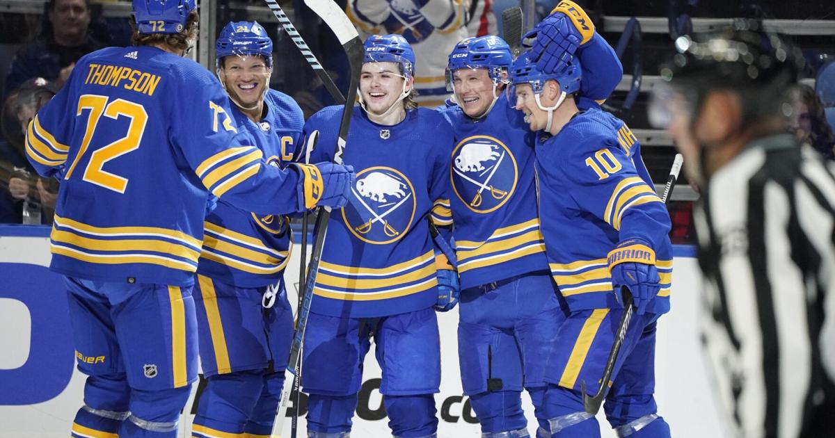 The Buffalo Sabres staged a remarkable comeback, scoring four goals in the final 15 minutes of regulation to defeat the Vegas Golden Knights 5-2. Jack Eichel, now playing for the Golden Knights, had given his team the lead early in the third period, but the Sabres responded with a strong offensive performance. Rookie Zach Benson scored the game-winning goal and added an assist, while goalie Devon Levi made several key saves to secure the victory. The win comes after a disappointing loss to the Colorado Avalanche and highlights the Sabres' resilience and ability to compete against top teams in the NHL.